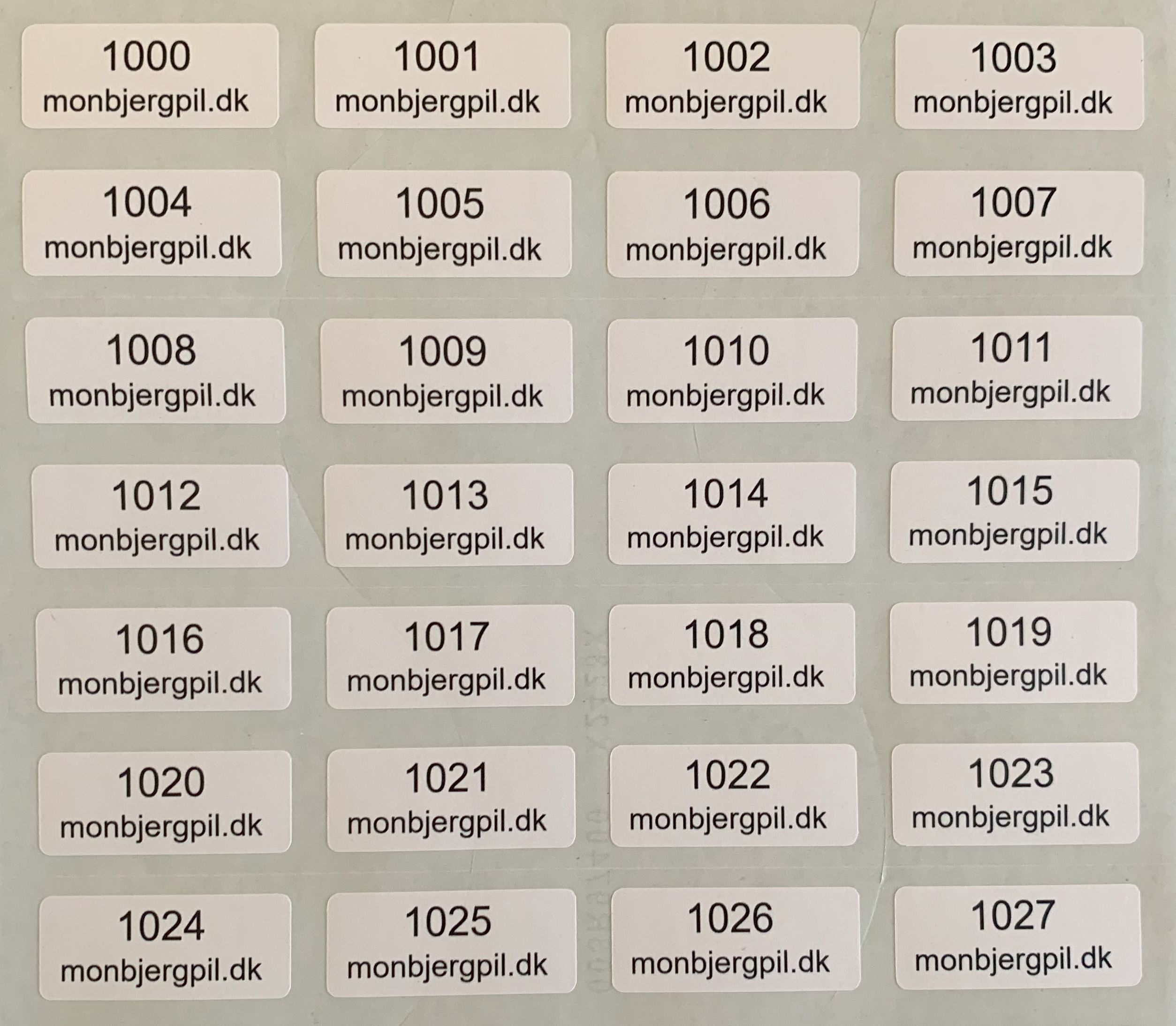 Permanent klæbende, alle labels er samlet på et A4 ark. Lige til at tage af og bruge.