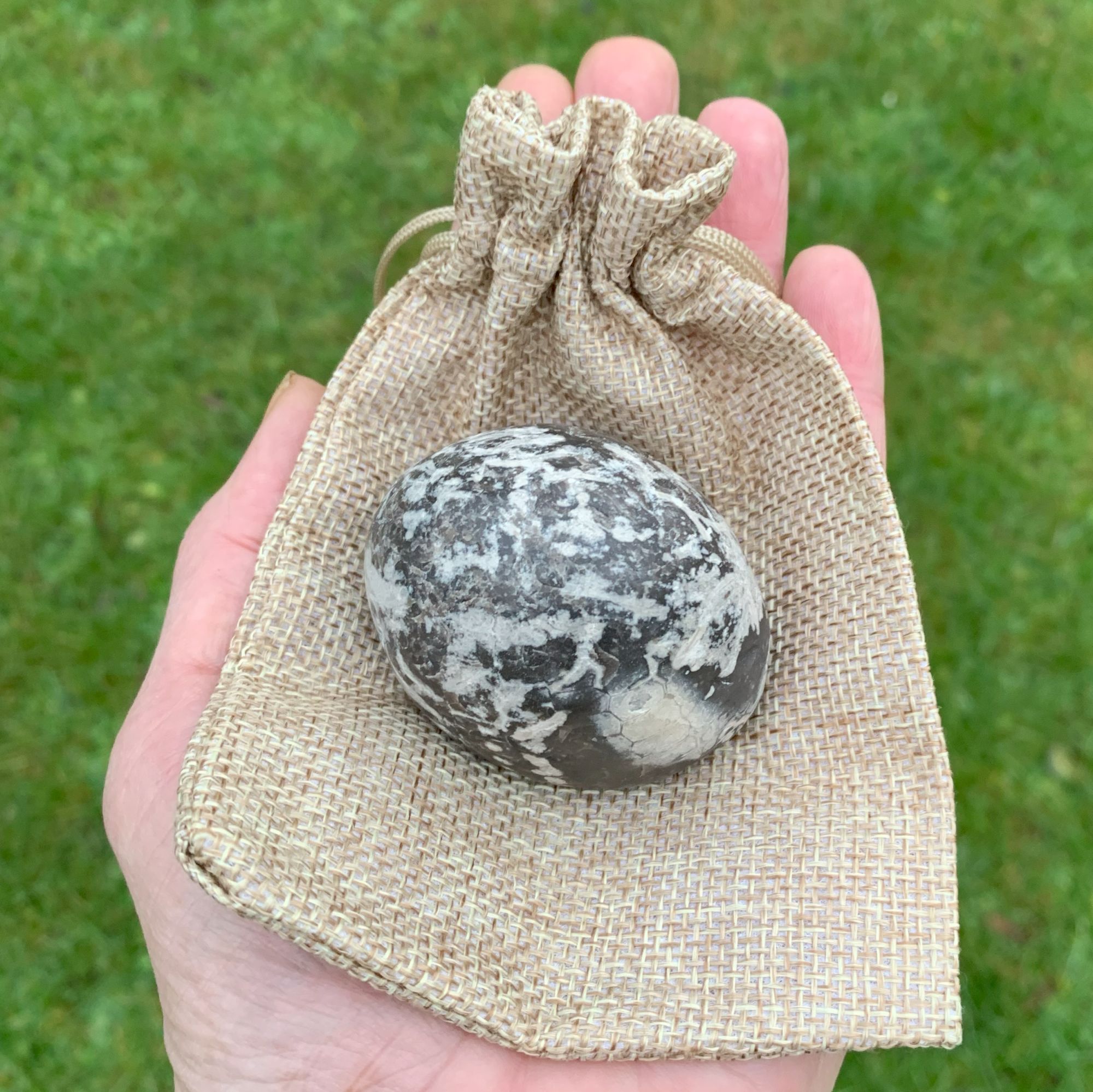 Der medfølger en lille naturfarvet sæk med snørelukning, lige som på billedet.