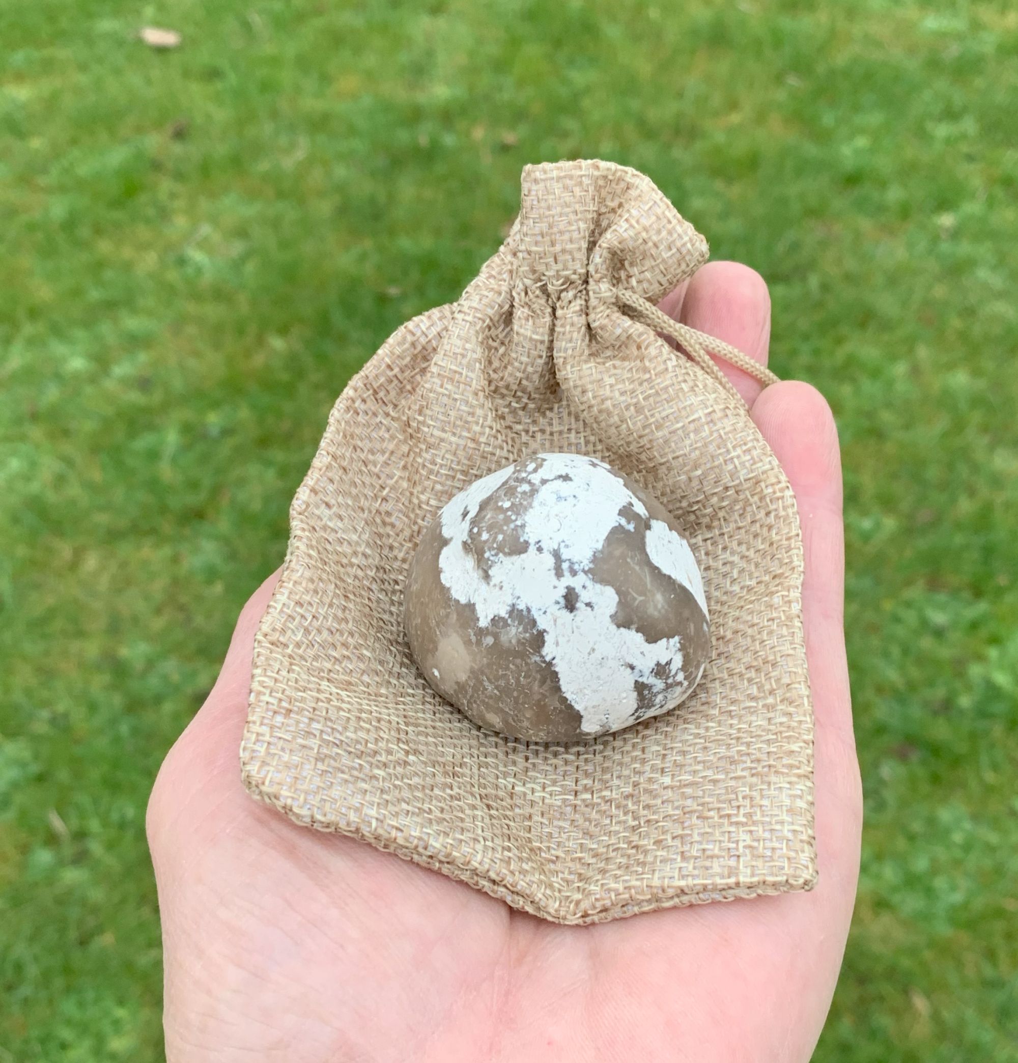 Der medfølger en lille naturfarvet sæk med snørelukning, lige som på billedet.