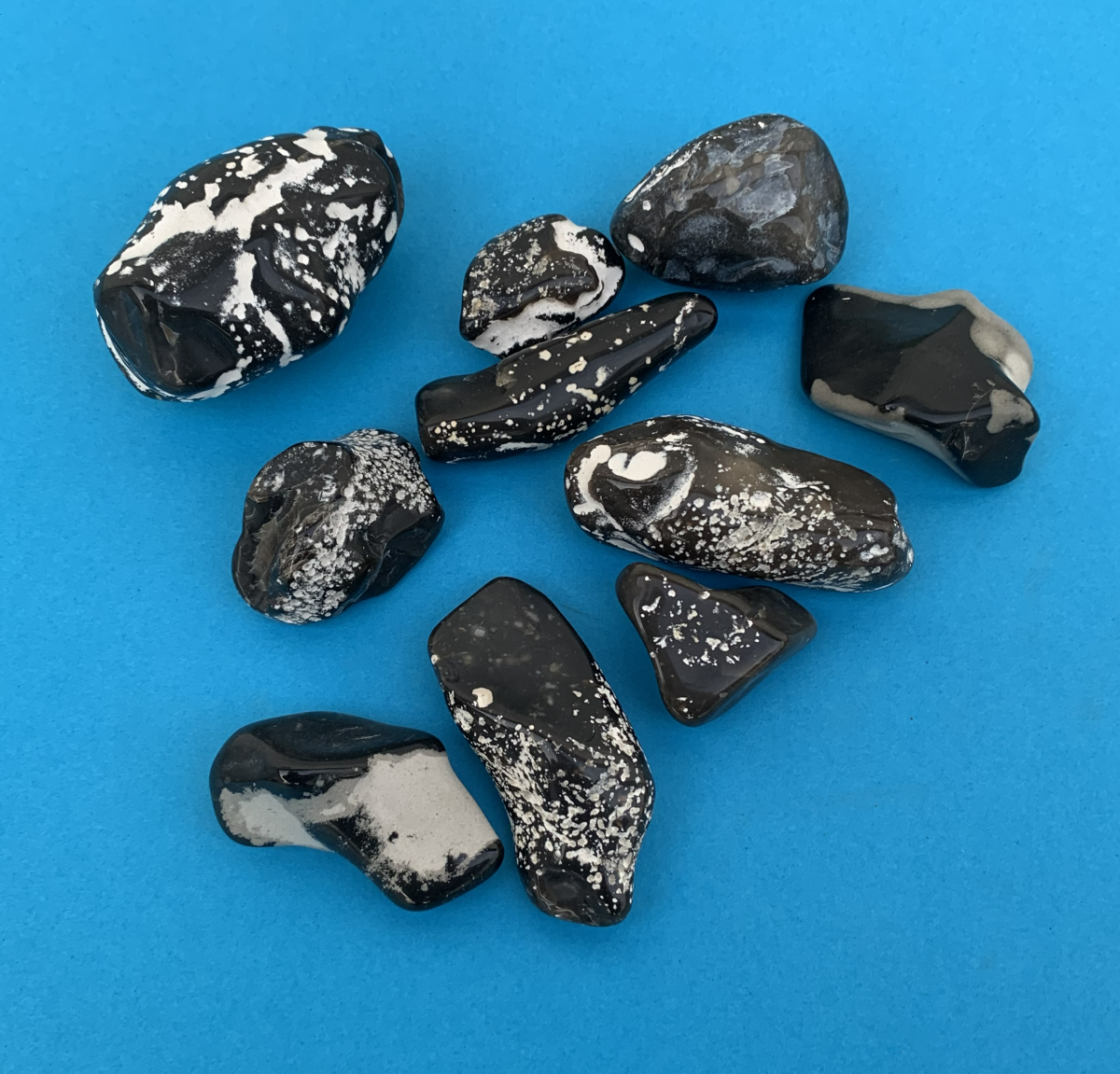 Poleret flint fra en dansk strand. Udvalgt efter fine aftegninger og glathed fra starten. Flint er meget vanskeligt at polere, det er hårdt og glasagtigt. Flinten har kørt i polermaskinen i 6 måneder sammen med andre sten. Så lang tid tager det at få en flot og glat overflade.